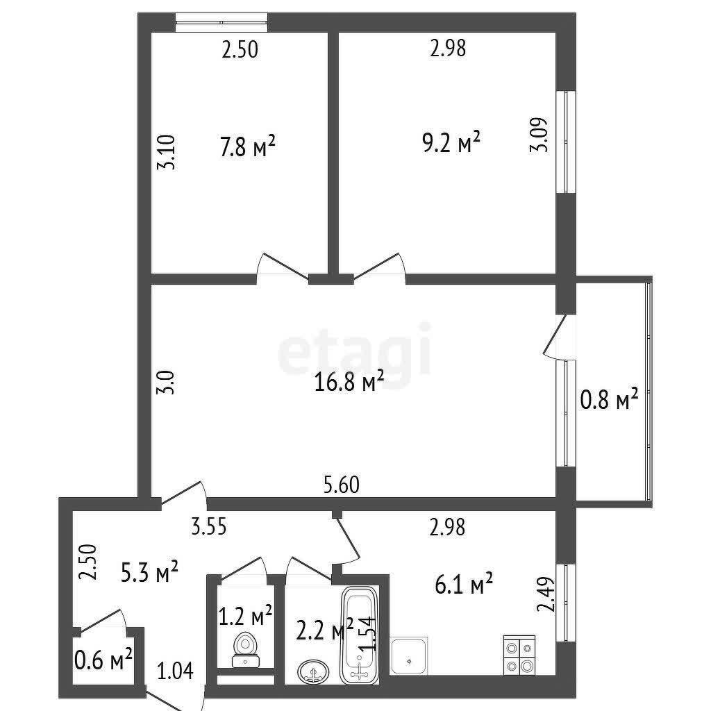 3-х комнатная квартира (площадь по СНБ=50 м2) в отличном месте для жизни.